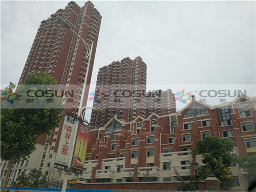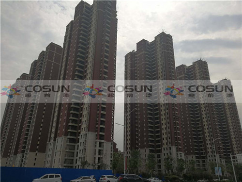 超前涂料 CCTV黃金展位合作伙伴鄭州中建七局森林上郡工地施工面積16萬(wàn)平方,為了追求高端社區(qū)的需要,能從視覺(jué)上彰顯整個(gè)建筑的高雅與莊重之美,選擇了天然真石漆做為外墻專用漆。